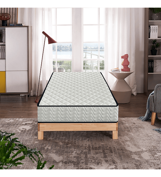 El colchón tiene un diseño elegante, con un acabado blanco y un contorno en color negro, que no solo resalta su aspecto moderno, sino que también asegura durabilidad y resistencia. Además, es fácil de montar, lo que lo convierte en una opción práctica y conveniente para tu hogar.