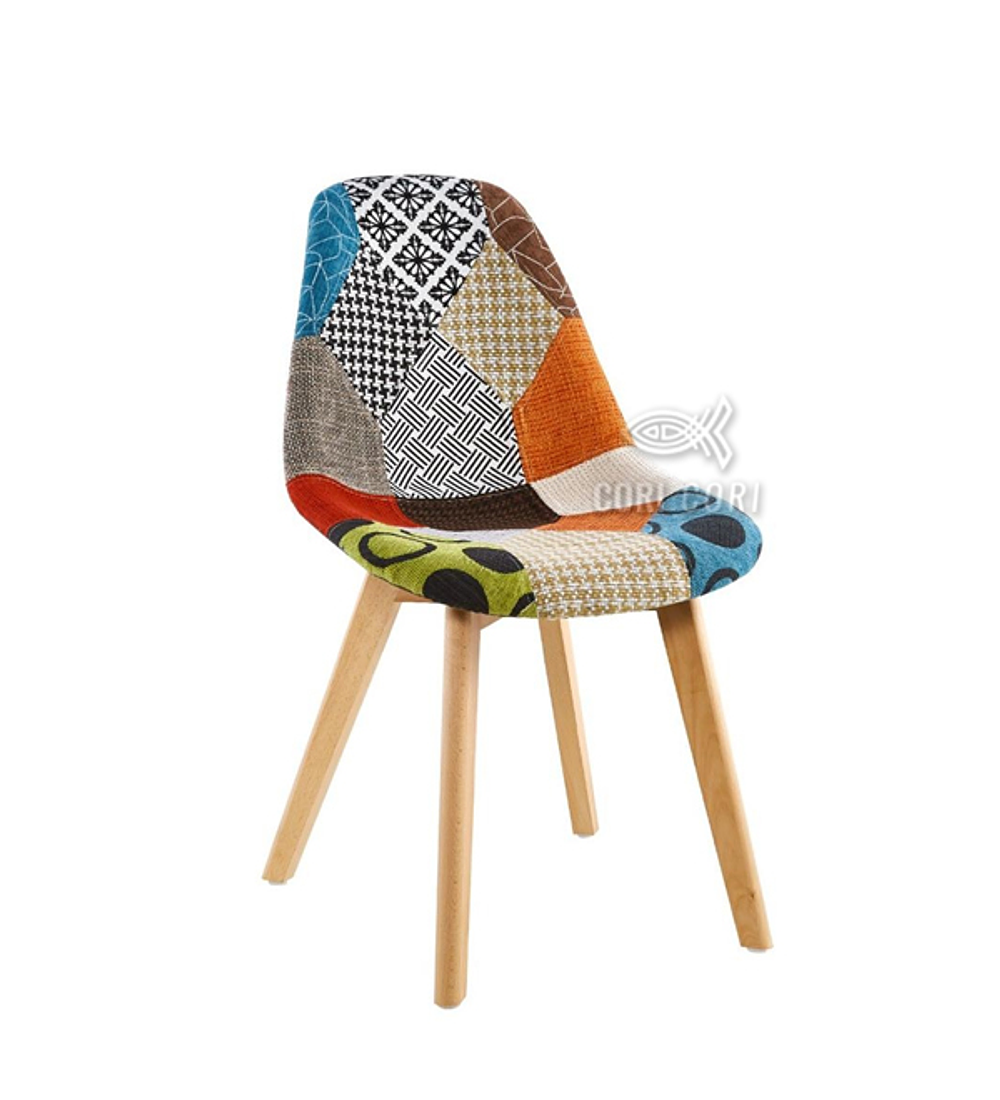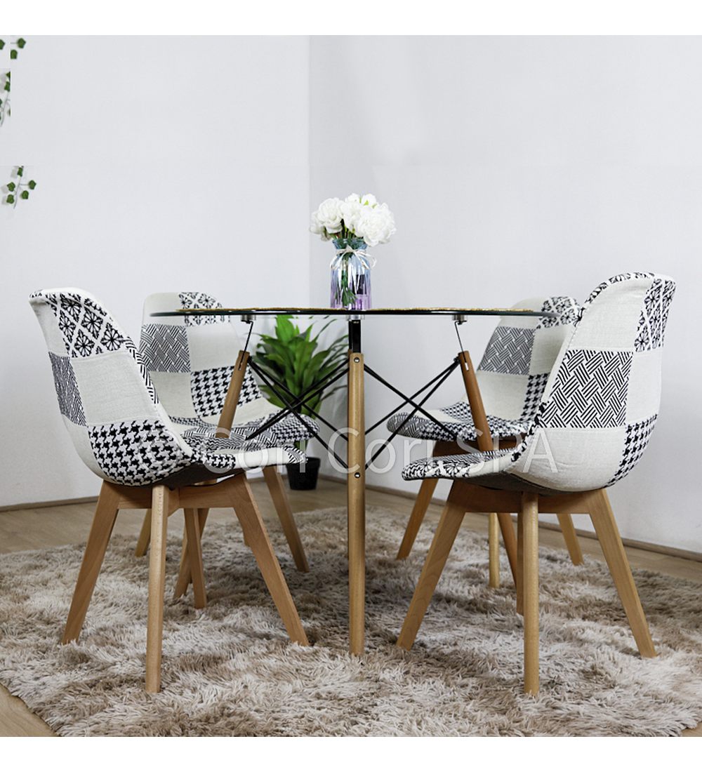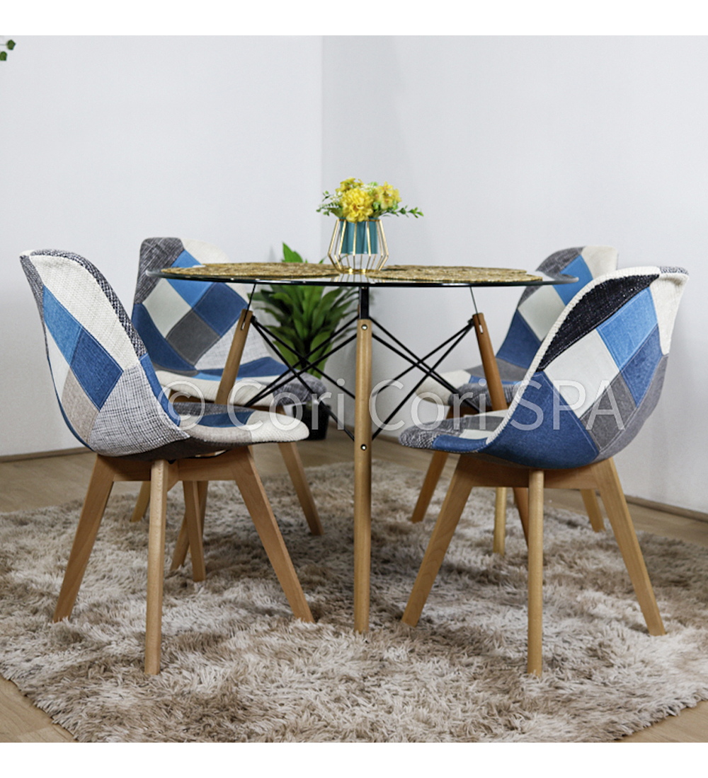 Comedor Eames Vidrio 80cms + 4 Sillas Patchwork Wood