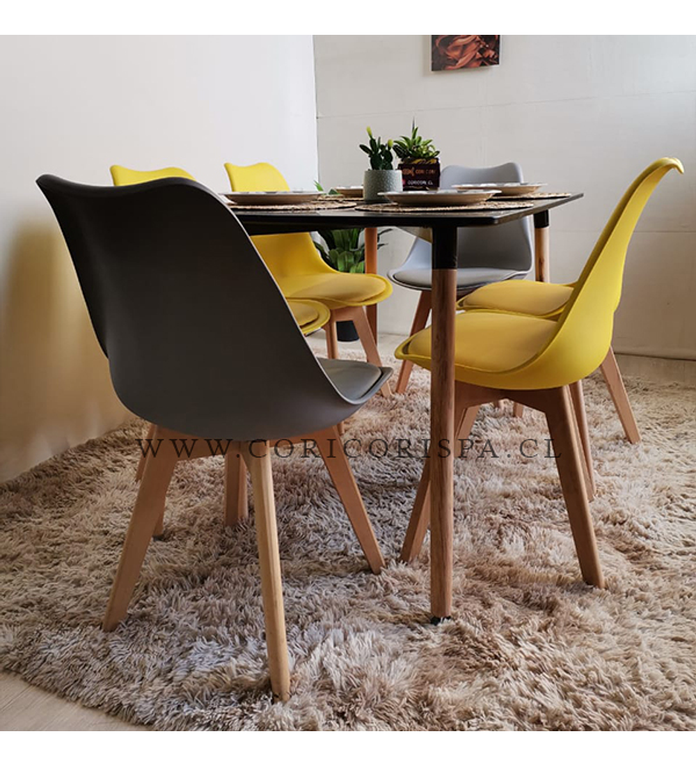 Las 4 sillas Tulip, inspiradas en el estilo nórdico, suman comodidad y estética. Su asiento ergonómico y patas de madera brindan un look contemporáneo, haciendo que cada comida sea más cómoda y con estilo.