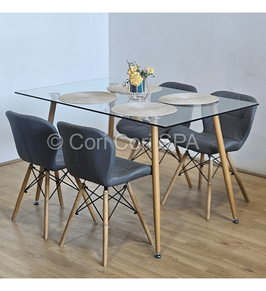 Comedor Medlock 140 x 90cm + 6 Sillas Capitonne Lino