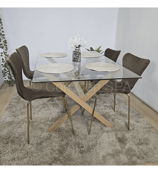 Comedor Medlock 140x90cm + 4 Sillas Capitonne Top Gold