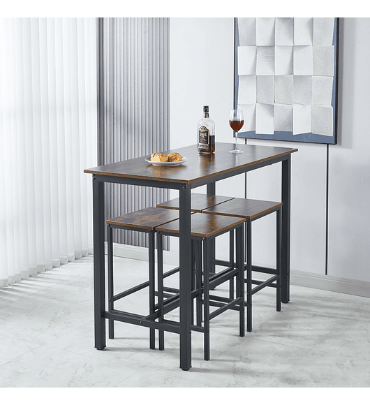 Este comedor industrial es una excelente opción para aquellos que buscan un estilo moderno, práctico y resistente. Compuesto por una mesa y dos banquetas, su diseño combina materiales robustos para lograr un look industrial muy atractivo.