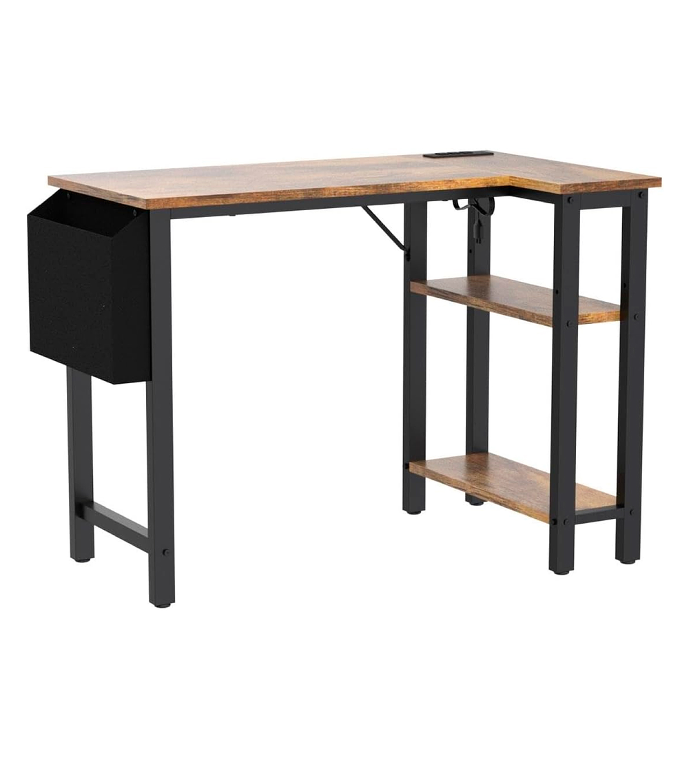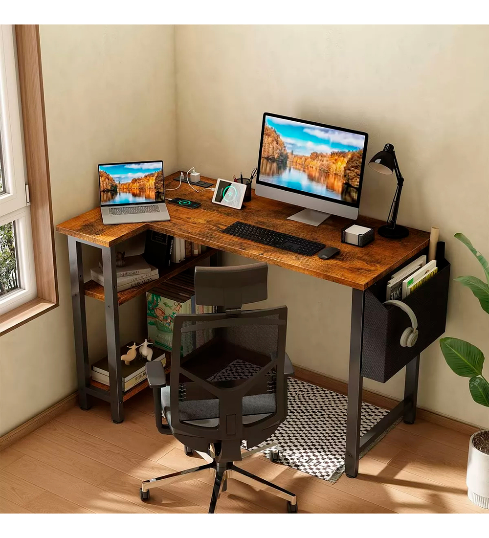 Maximiza tu espacio de trabajo con el Escritorio Rustik Esquinero, una opción ideal para optimizar rincones y darle un toque único a tu oficina o estudio. Su diseño rústico con superficie de melamina ofrece una estructura resistente, mientras que las patas de metal aseguran estabilidad y durabilidad. Además, cuenta con un compartimiento de almacenamiento para mantener tu área organizada.