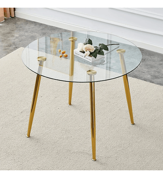 Mesa de comedor con una cubierta de vidrio templado de 100cm de diámetro y unas resistentes patas de metal. Combínala con tus sillas favoritas.!!